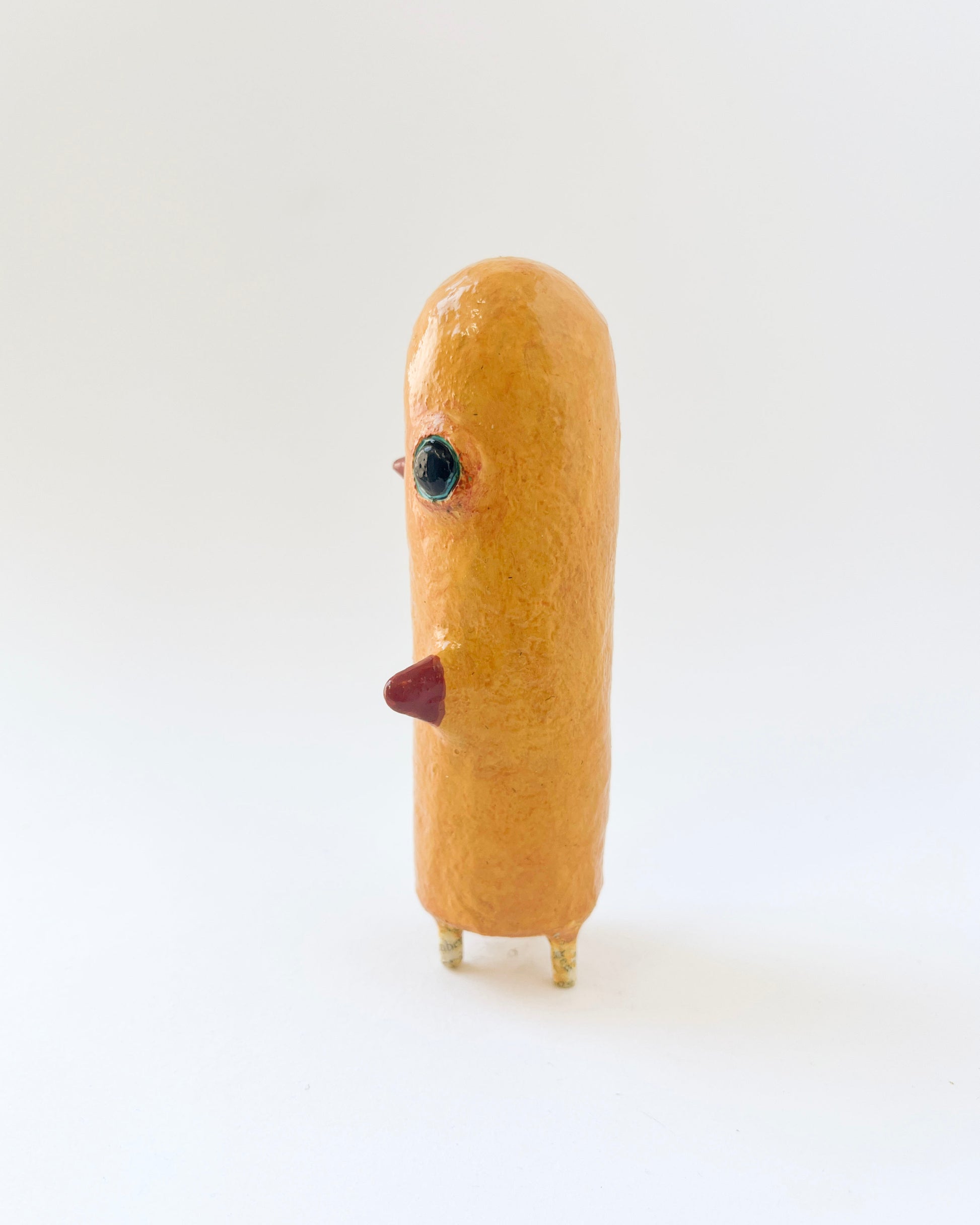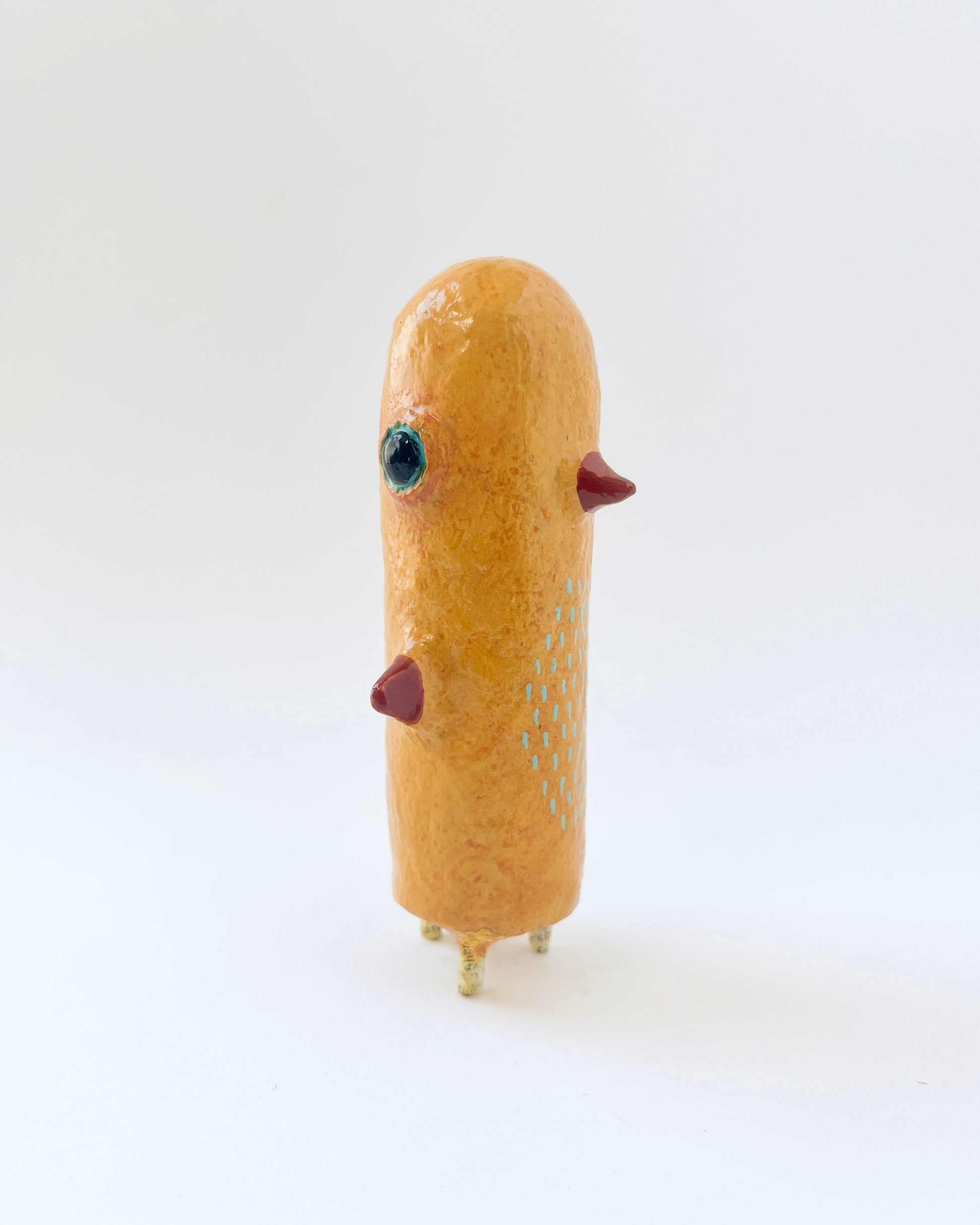The sculpture is hand-crafted by the artist from paper mache and painted with fluid acrylics.