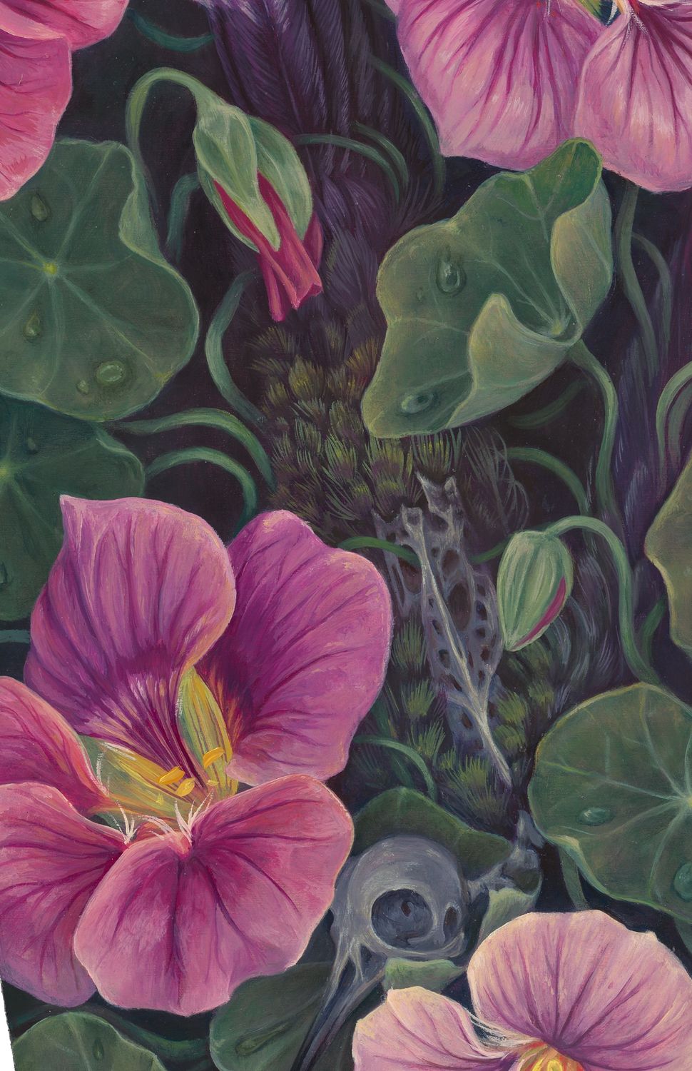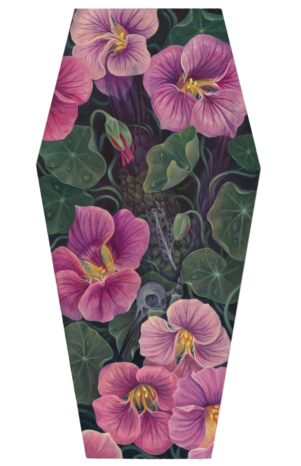 Cecelia’s work embraces themes of death, decay, and nature’s bittersweet beauty, offering a poignant exploration of complex emotions and human vulnerabilities. Her art invites viewers to reflect with tenderness and introspect on their own challenging or melancholy experiences.